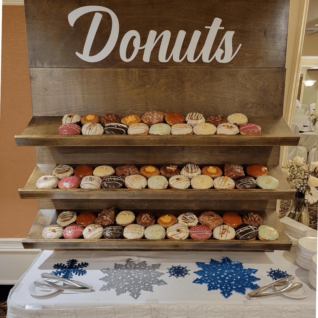 Create a beautiful display for a wedding or event. Our custom built donut walls allow you to display any type of donut. We will even handle the setup and take down. *Some restrictions apply*